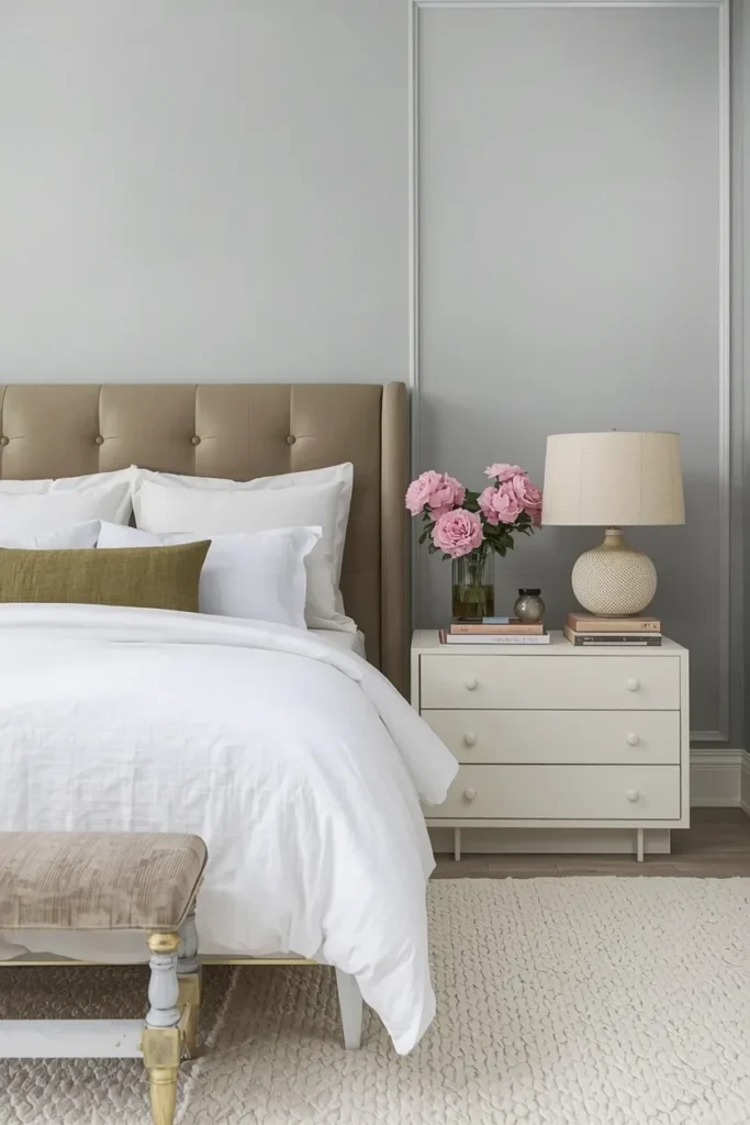 Start with a striking wallpaper that sets the tone for your maximalist bedroom. Think large-scale patterns, florals, or geometric designs in bold colors. Luxury wallpaper can enhance the room’s aesthetics and set the foundation for a high-end bedroom design.