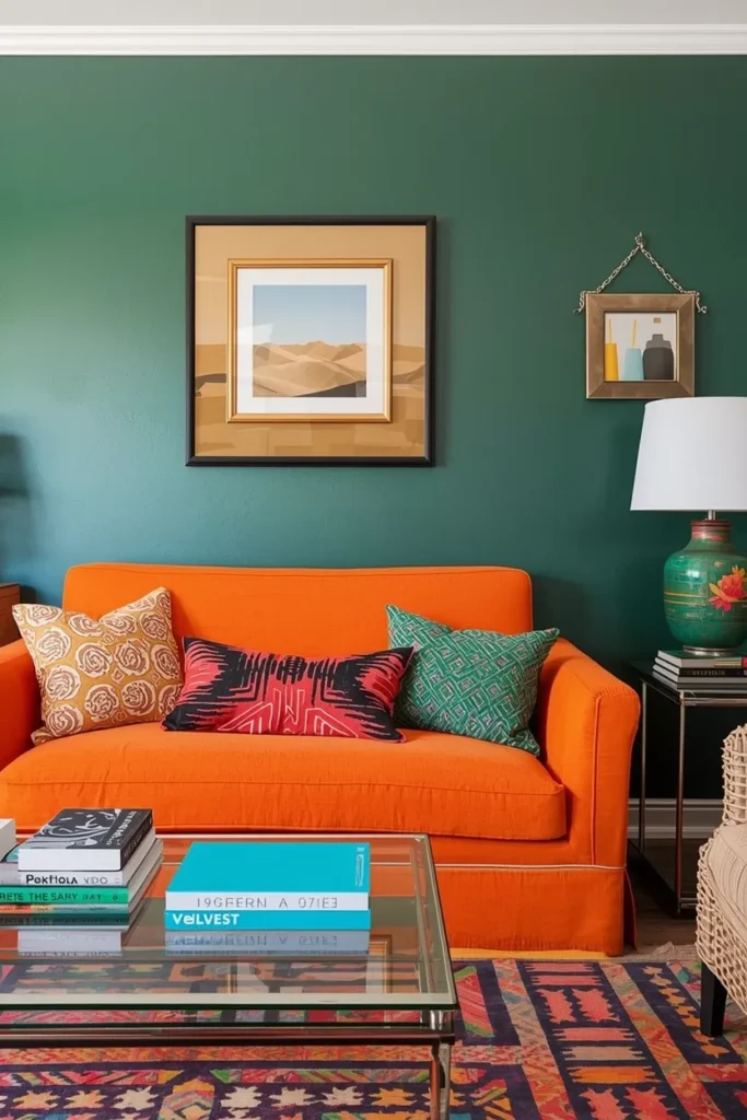 15. Bold Color Pop Living Room