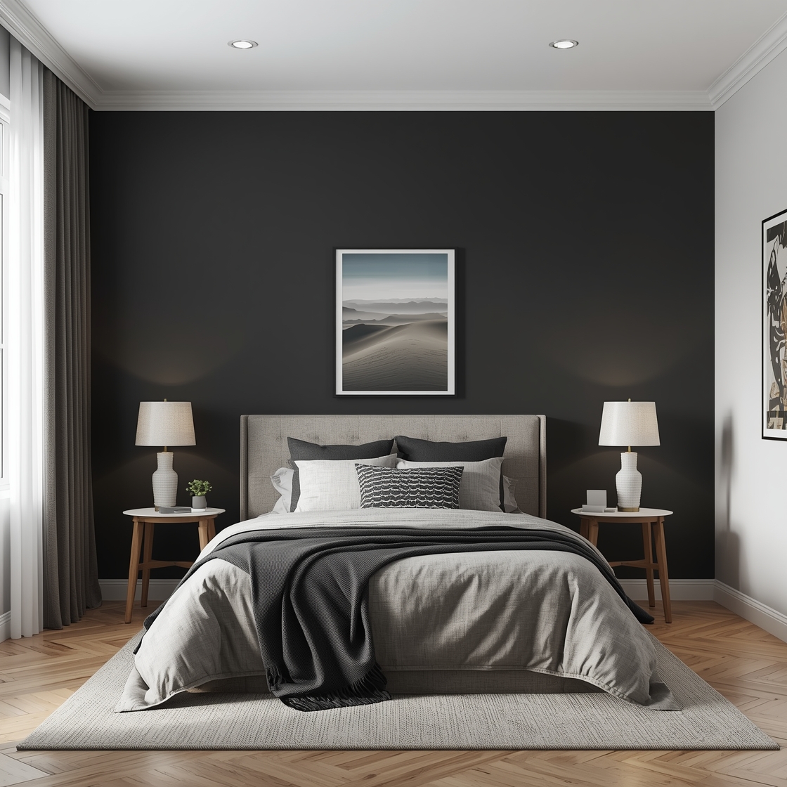 Now, do we even need to discuss the bedroom? Seriously, though. Imagine waking up, sunlight streaming in, and your first sight is that elegantly bold black wall. It’s dramatic but soothing. You could layer it with soft whites and warm taupes or throw in a deep emerald green for extra oomph.