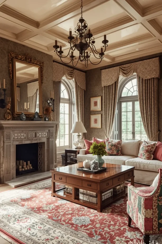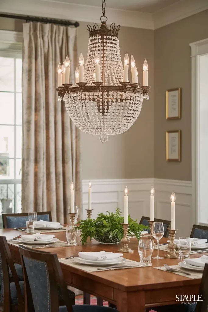 You don’t need high ceilings for a chandelier moment. A mini crystal chandelier in the bedroom or an aged iron fixture over your dining table can completely transform the mood. Opt for dimmable bulbs or real candles (if it’s safe!) for added ambiance.