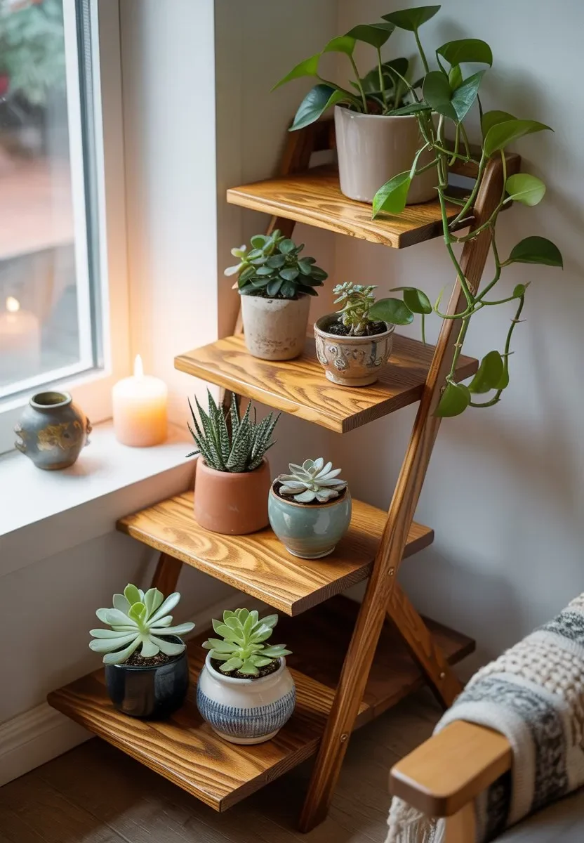 Like a bookshelf for your plant novels. Wood feels classic, and multi-level shelves allow for creative styling: mix cacti with trailing ferns, or pop in a decorative rock or candle.