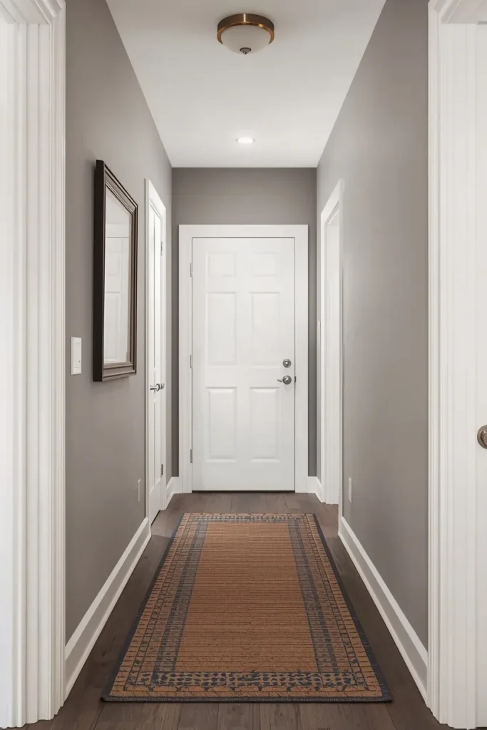 Light gray is a versatile color that complements any style. It’s a great backdrop for decorative wall art and accent furniture, giving your hallway a modern edge.