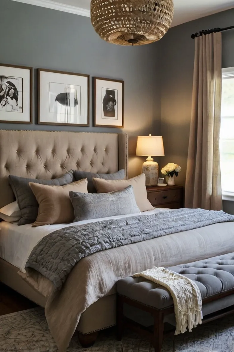 Art over the bed: A single oversized piece or a mini gallery wall.