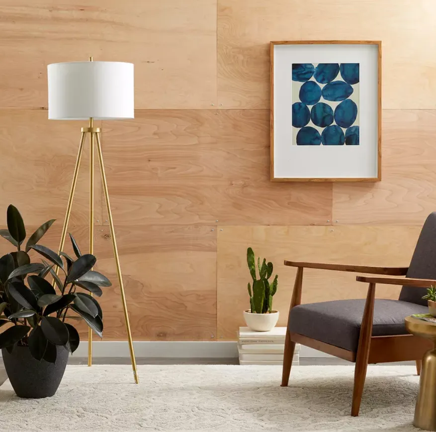 This wood accent wall might look like it came straight from a designer portfolio, but it’s actually a simple DIY project using standard plywood.