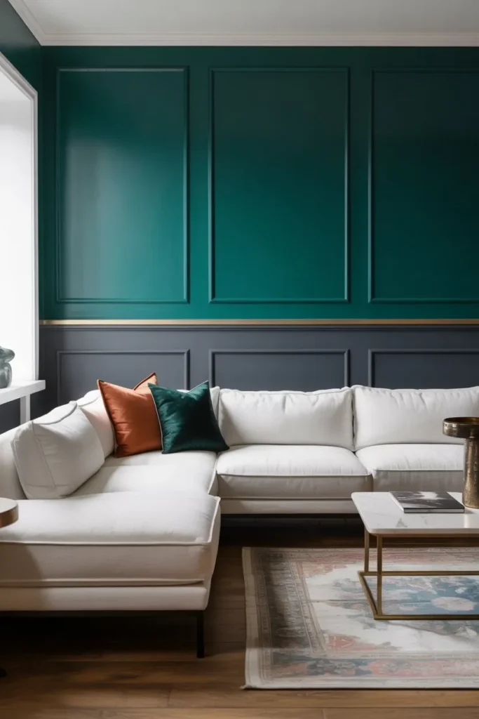 Why not turn the entire wall into a work of art? A deep, moody color like charcoal or emerald green can create a dramatic backdrop for your furniture. Feeling adventurous? Try two-tone or color-blocked walls!