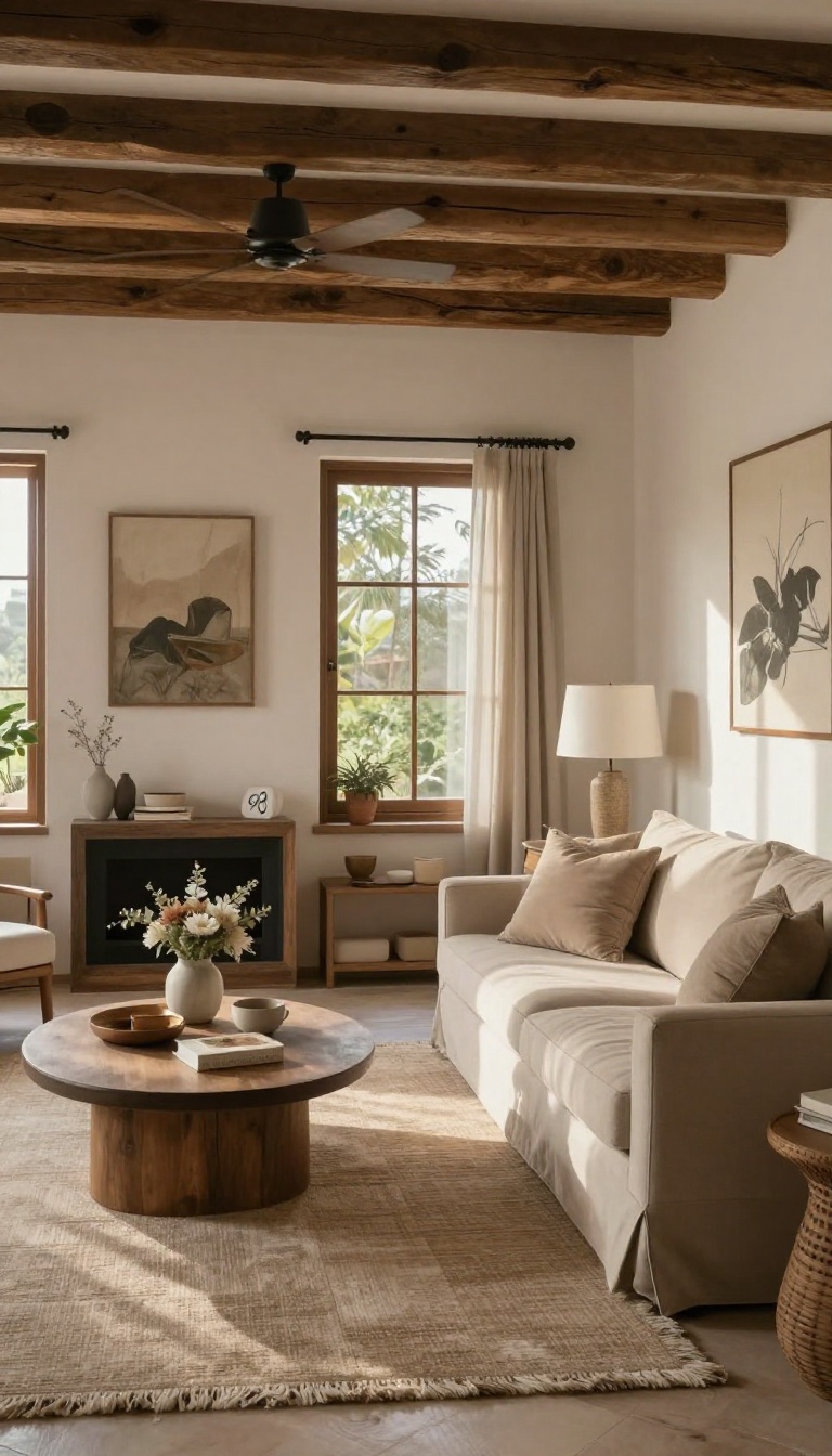 Consider experimenting with elements like velvet pillows, natural woven baskets, or even some rustic wood accents. You want your living room to ignite that cozy, sun-soaked feeling.