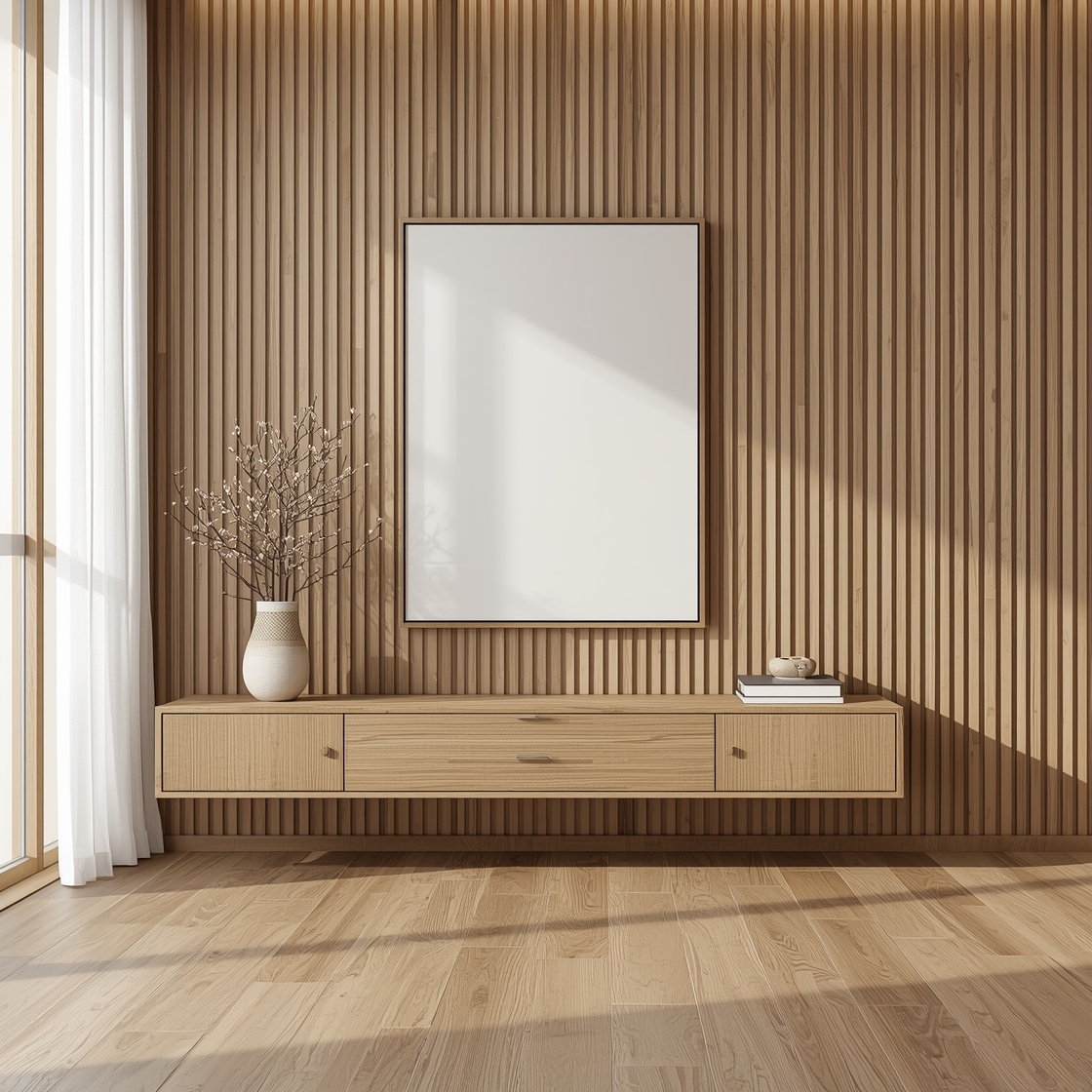- Consider frames that complement the oak and white theme—think simple wooden frames or light blonde wood to keep it cohesive.