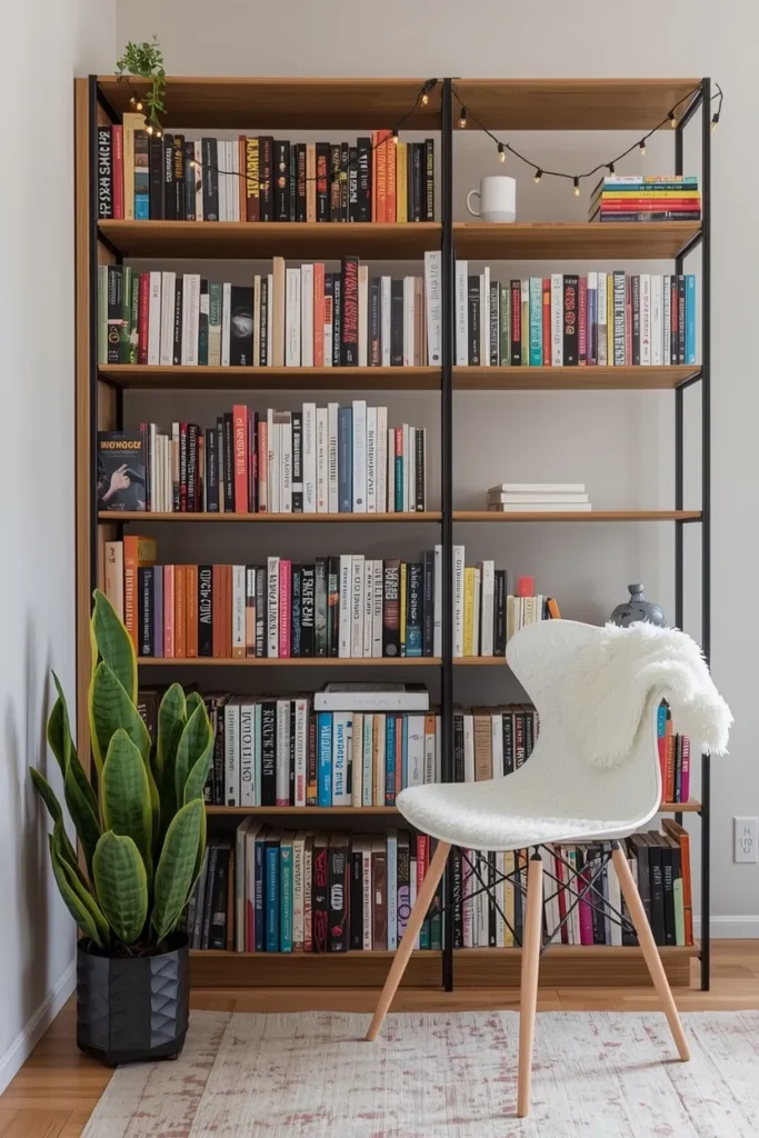 Drape a few fairy lights across the shelves, add a potted plant like a snake plant—because who doesn’t love low-maintenance greenery?—and you’ve got yourself a cozy nook! The best part? You can switch out the books or decorations as your interests change.