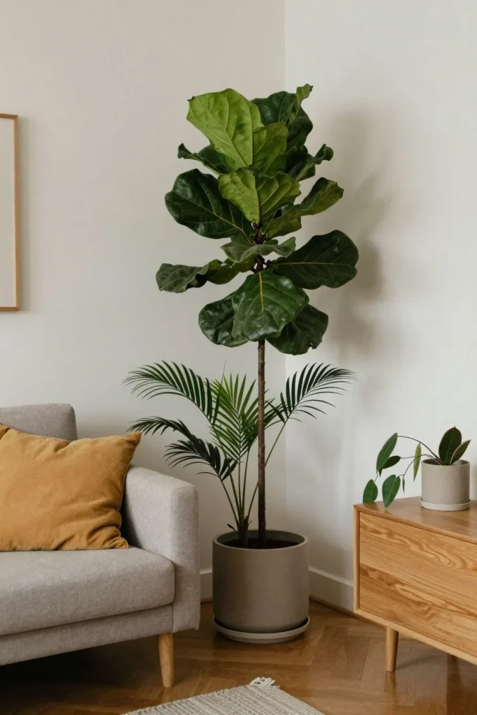 • A tall floor plant (fiddle leaf fig, rubber plant, or palm)