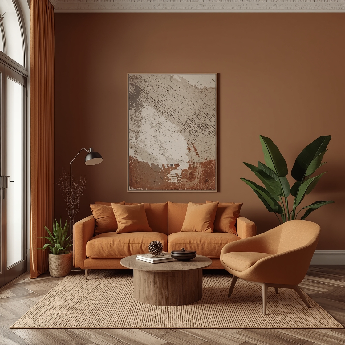- Select art pieces: Maybe a beautiful landscape painting that incorporates earth tones.