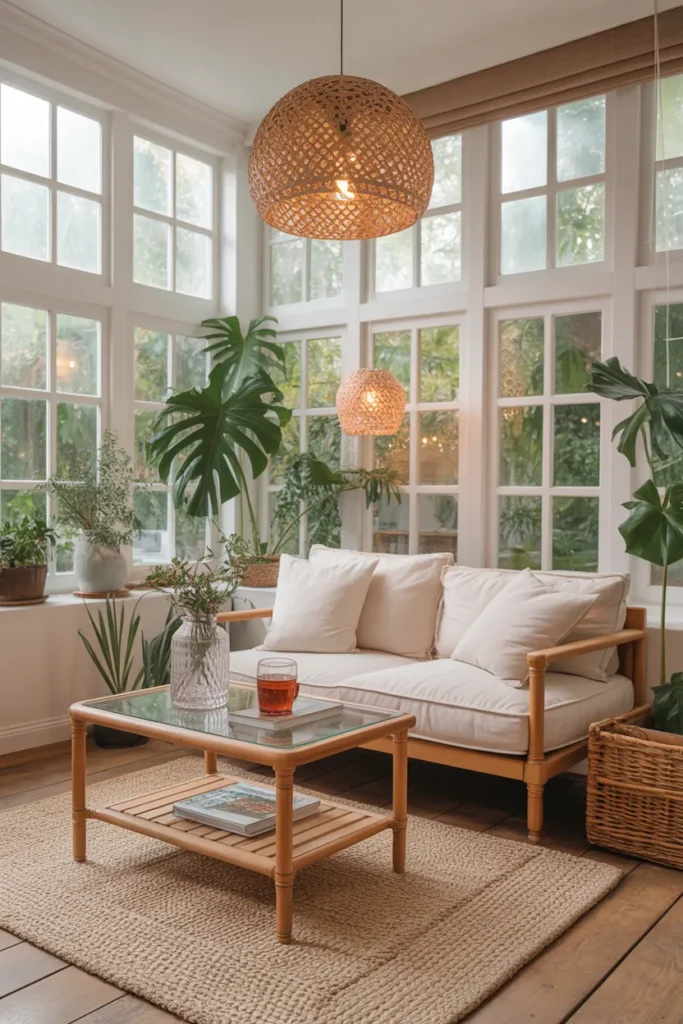 Bring the outdoors inside by adding indoor plants. A few potted plants, hanging vines, or a vertical garden can add life to your sunroom while improving air quality.