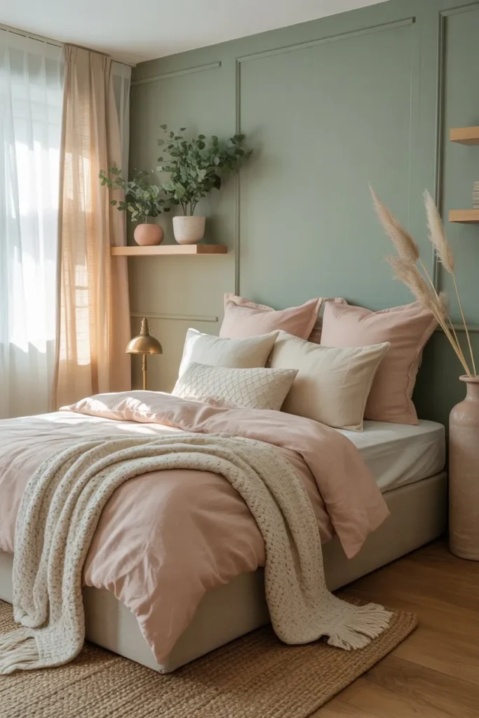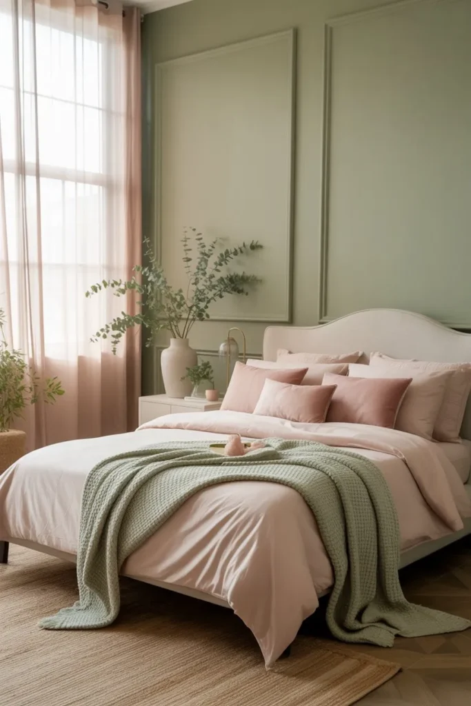 Green and Blush Bedroom: A Cozy Escape with Pink and Green Decor