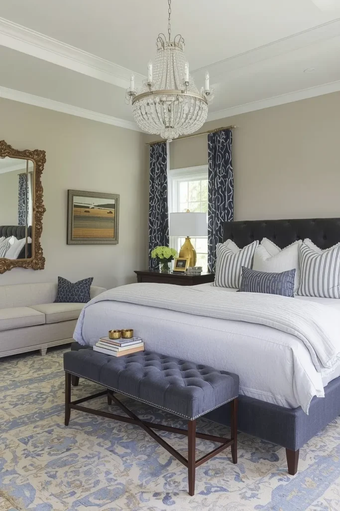 Coastal bedrooms: “I’m light and airy.”Southern bedrooms: “I’m ROYALTY.”With tufted headboards, crystal chandeliers, and enough pillows to build a fort, it’s luxury without trying too hard.