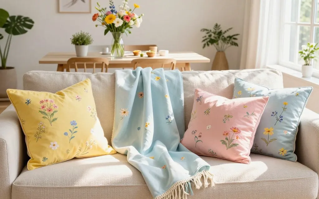 Begin with seasonal fabric swaps for easy impact. Swap thick blankets for gauzy throws and trade dense drapes for airy sheers. A cotton duvet, linen slipcover, and a low-pile cotton rug make rooms feel fresher without a big investment.